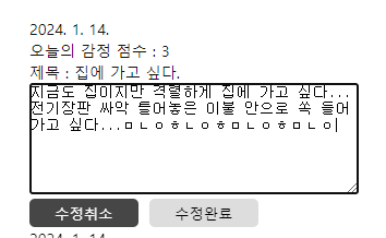 수정 취소 버튼 클릭 시 수정 상태 false(toggleIsEdit함수)가 되는 동작과 textarea의 글 상태도 원래 화면에 노출된 내용으로 다시 변경되는 동작 한꺼번에 실행 가능한 동작 한꺼번에 처리해야 함